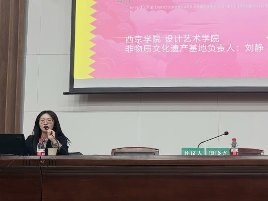 我院刘静教授作为代表以《国风潮涌 非遗焕新——文化基因活化与设计教育实践》为题旨在探讨如何通过设计教育和现代技术手段,活化非物质文化遗产,并将其与现代设计潮流(国潮)相结合,推动非遗的传承与创新。发言强调了非遗保护的重要性,展示了西京学院在非遗传承与创新方面的实践成果,提出了利用数字技术赋能非遗保护的新思路,为非遗的未来发展提供了有益的参考和启示。