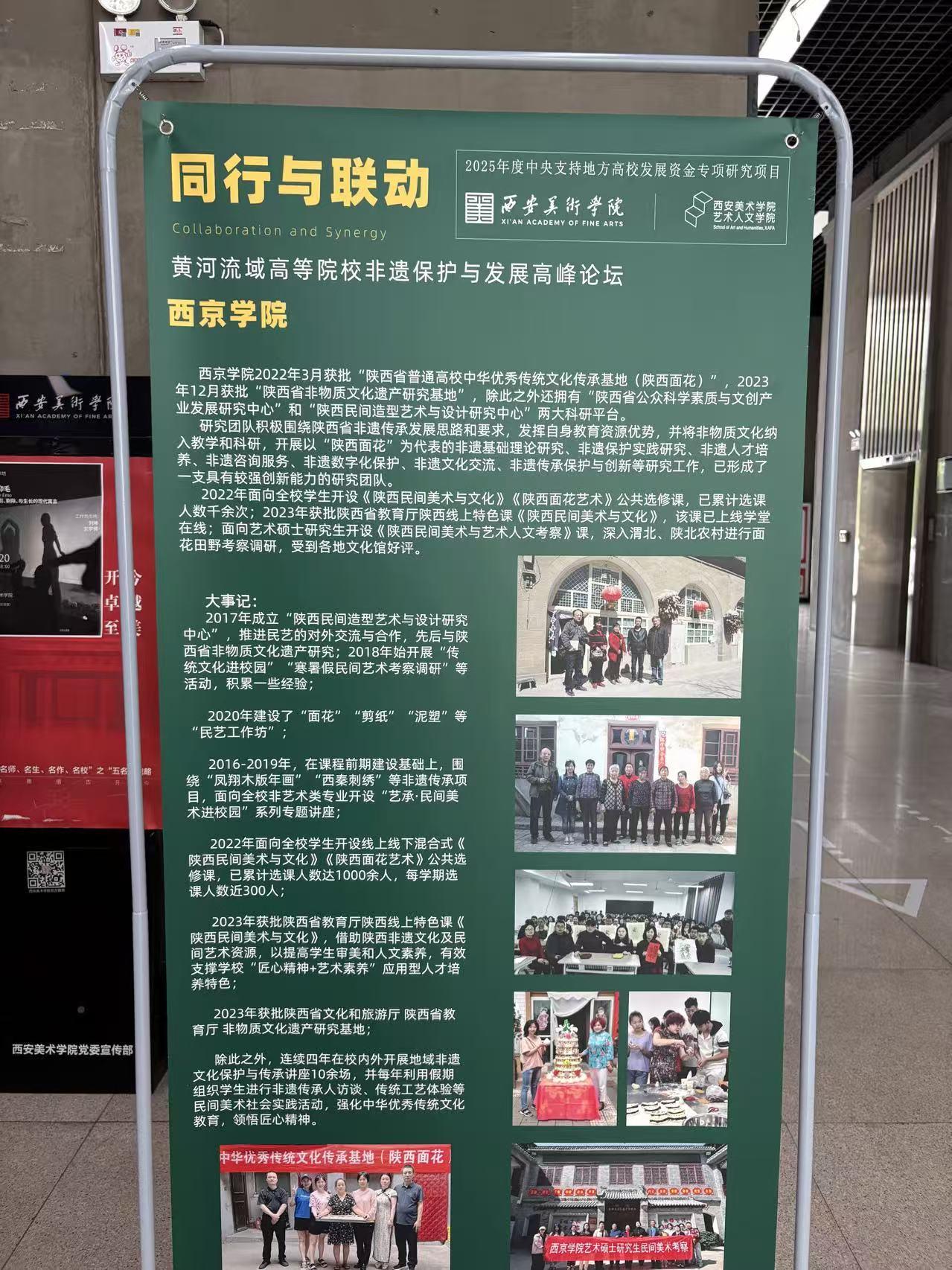 2025年9月19至21,“同行与联动:黄河流域高等院校非遗保护与发展高峰论坛”在西安美术学院成功举办。本次论坛由“中央支持地方高校发展资金专项研究项目”支持、中国工艺美术学会民间工艺美术专业委员会学术指导、西安美术学院主办,特邀黄河流域高校及陕西省非遗保护单位代表于金秋聚西安,共商非遗保护研究与教育教学工作。设计艺术学院作为受邀单位,全程参与论坛,并于其他高校一起对陕西非物质文化遗产研究基地、陕西高校中华优秀传统文化传承基地进行了展览展示,并围绕陕西非遗保护实践展开研讨与交流。
