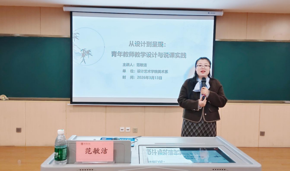 范敏洁老师以“从设计到呈现:青年教师教学设计与说课实践”为主题,结合自身参赛经历与教学成长轨迹,以《线描》课程为典型案例,比对近三年课堂教学创新案例的演变,深入剖析了术科教学中痛点问题的发展变化与针对性设计策略。她从教学设计的核心内涵、实操方法、说课实践及迭代提升等方面展开讲解,详细分享了《线描》课程在教学内容重构、教学模式创新、数智媒体运用、课程思政融入及多元评价体系搭建等方面的实践成果,提出的“目标引领、学为主体、智能融合、传承育人”课程教学理念,以及“神情意趣”四韵智慧课堂建设思路,为青年教师开展教学设计与课堂创新提供了可借鉴、可操作的实践路径,同时鼓励青年教师充分发挥学科优势,勇于突破、大胆创新,扎实做好每一堂课的教学设计。