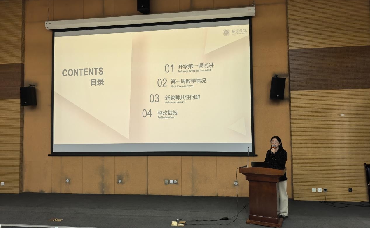 学院教学督导刘静就“开学第一课”教学展示活动、第一周教学整体情况进行详细通报,精准指出新教师教学过程中存在的共性问题,并结合教学实际提出针对性整改建议,为教师优化教学方法、提升课堂教学质量提供了具体指导,助力新老教师共同夯实教学基本功。